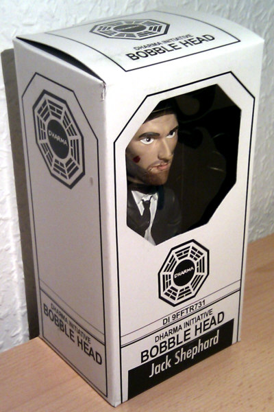 BifBangPow! released 12 LOST Bobble Heads, some of them are San Diego Comic Con exclusives. Each Bobble Head (except of one) stands 7 inch tall and comes in a Dharma Initiative style window box.