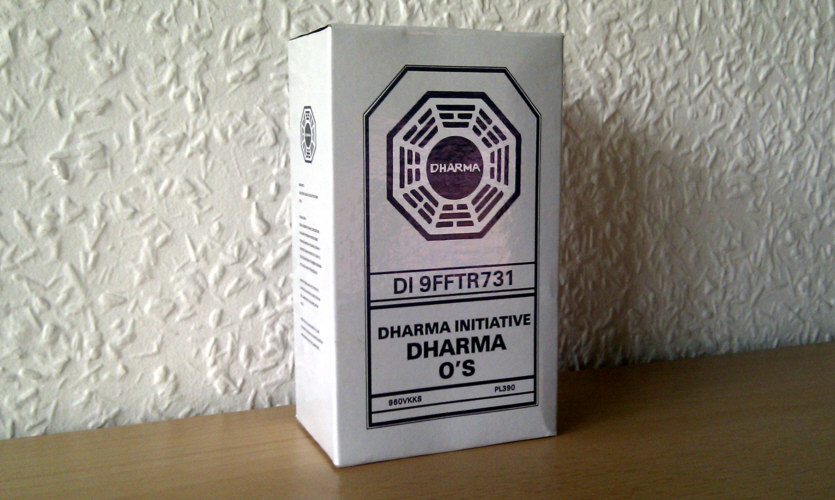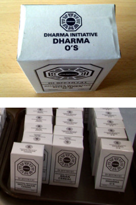The Dharma Initiative DHARMA O'S cereal box is seen among others in the background in a scene in 1977, where