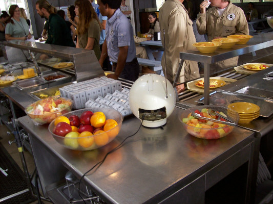 The Dharma cafeteria with adjacent kitchen is located in a large building, in the southern cluster of the barracks.