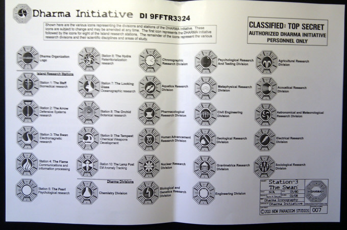 Sheet 007 - Shows about 30 of the various Dharma Initiative patches.