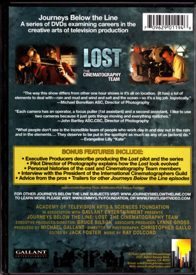 A behind-the-scenes look at the hit TV show LOST, from the perspective of cinematographers Michael Bonvillain and John Bartley. With additional insight from the location tech scout, camera operators, gaffer and dolly grip. The cast are also on hand to express their admiration for the cinematography team.