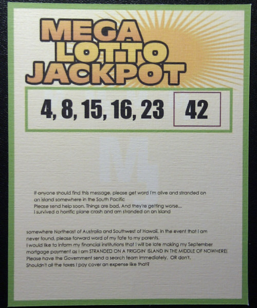 The Mega Lotto Jackpot is the lottery that Hurley Reyes wins for $114 million dollars by playing the Numbers 4, 8, 15, 16, 23, 42.
