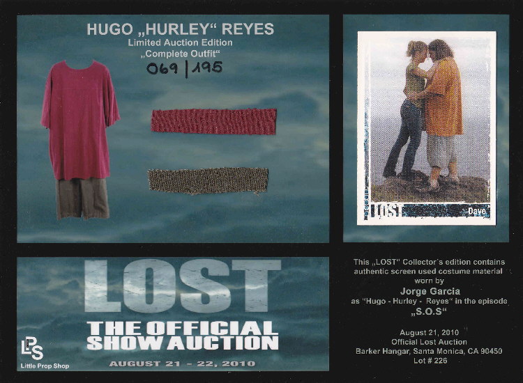 Costume Prop Card Jorge Garcia as Hugo "Hurley" Reyes Limited Auction Edition "Complete Outfit" from Little Prop Shop LOST - The Official Show Auction - August 21-22, 2010 |