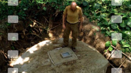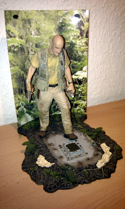 The figure stands 7 inch tall on a detailed hatch door base, comes with hunting knife, water bottle and includes a photographic jungle backdrop. His pose is looking down the hatch as seen in S1E19 - Deus Ex Machina.