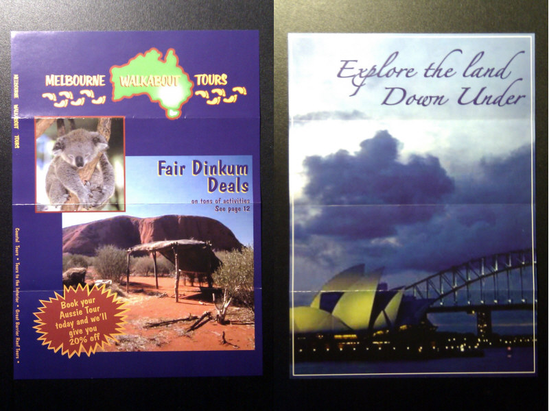 It comes with a full-size prop replica of his Melbourne Walkabout Tours brochure cover.