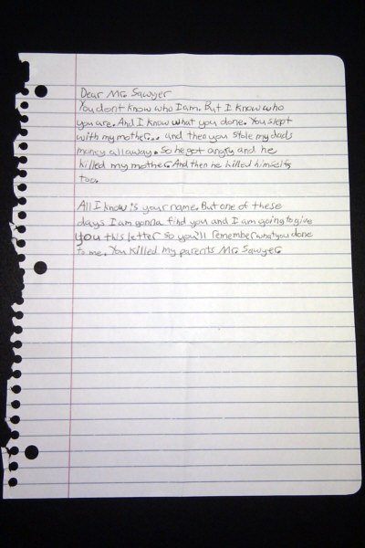 For comparison: LOST - The Official Show Auction Lot #148 Sawyer's letter to the man who murdered his parents