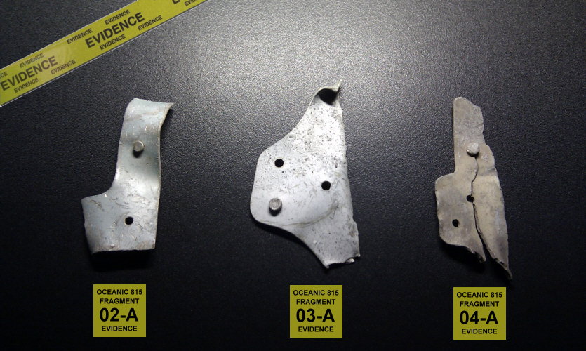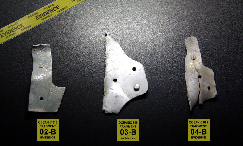 This are three authentic Oceanic Airlines Flight 815 airplane fragments found at the LOST Season 1 filming site at Mokule'ia Beach, North Shore Oahu, Hawaii. The pieces were collected after filming was completed and the LOST crew had removed the wreckage from the scene and left the area completely.
