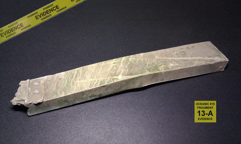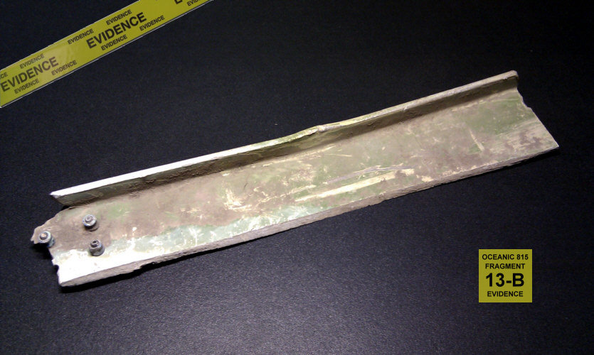 This is an authentic Oceanic Airlines Flight 815 airplane fragment found at the LOST Season 1 filming site at Mokule'ia Beach, North Shore Oahu, Hawaii. The piece was collected after filming was completed and the LOST crew had removed the wreckage from the scene and left the area completely.