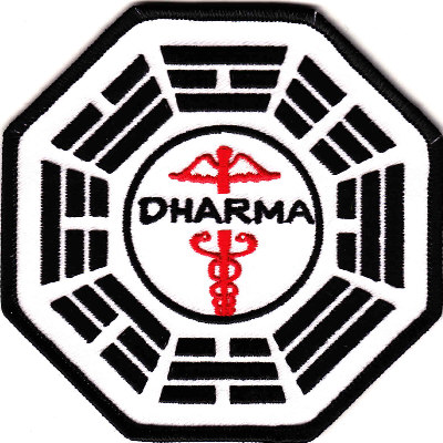 Dharma Initiative Staff Station logo embroidered patch, 4 x 4 inch size, in usual octagonal shape.
