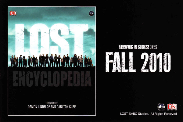 The front side depicts an Apollo Candy Bar and the back side announces the LOST Encyclopedia - "Arriving in Bookstores Fall 2010". DK Publishing handed out this postcard on the 2010 San Diego Comic Con. It measures 6 by 4 inches.