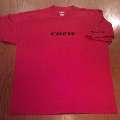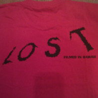 Color is red, front shows "CREW", back side the LOST Film Crew logo and "FILMED IN HAWAII". The left sleeve shows "ON LOCATION". Everything written in black.