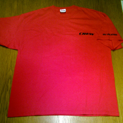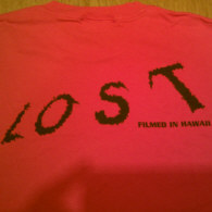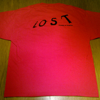 Color is red, front shows "CREW", back side the LOST Film Crew logo and "FILMED IN HAWAII". The left sleeve shows "ON LOCATION". Everything written in black.