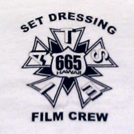 Color is white, front shows "SET DRESSING" and the IATSE Local 665 Hawaii logo, the back side shows the LOST Film Crew logo and below "SEASON 2, FILMED ON LOCATION, HAWAII". Everything logos and letters are printed in black.