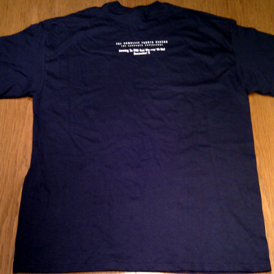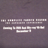 This navy blue T-shirt was handed out on San Diego Comic Con 2008 to promote the DVD and Blu-ray Hi-Def release of Season 4.