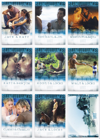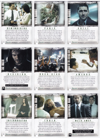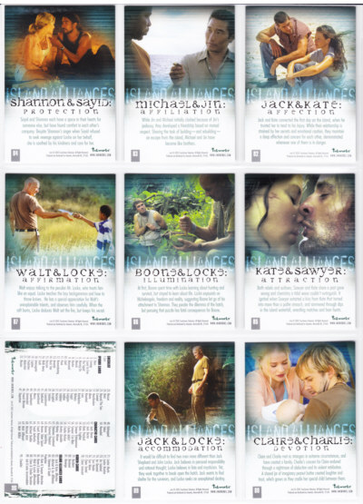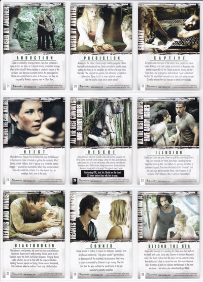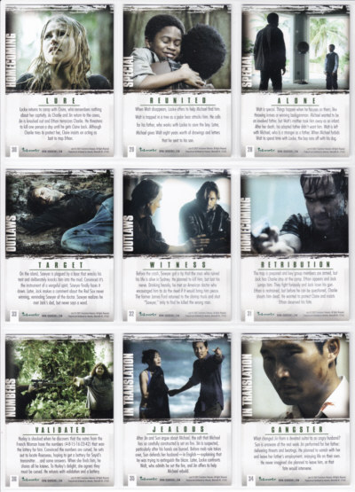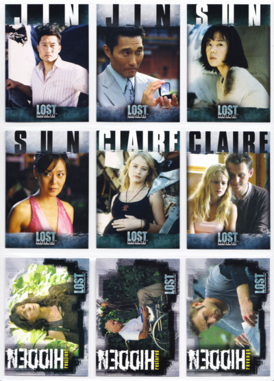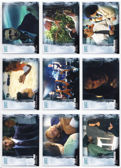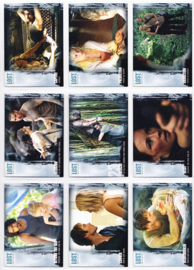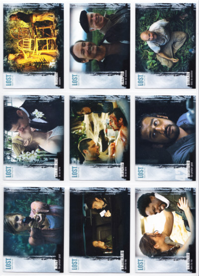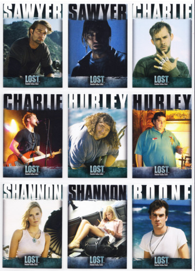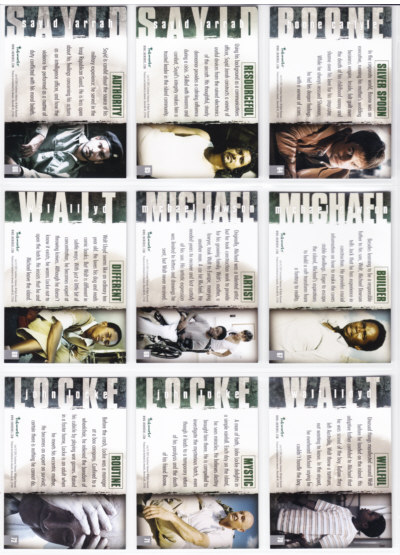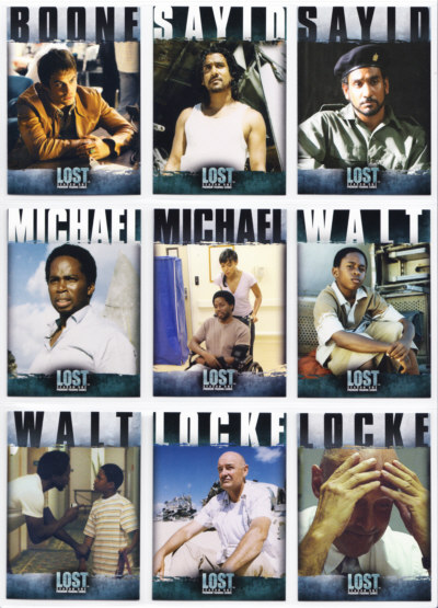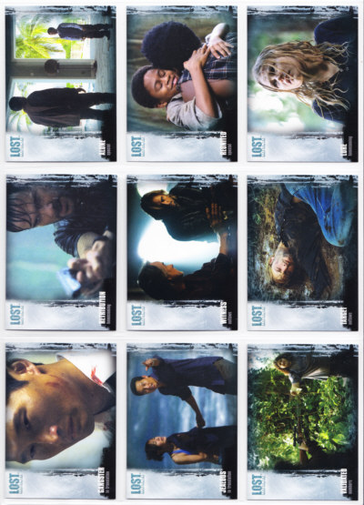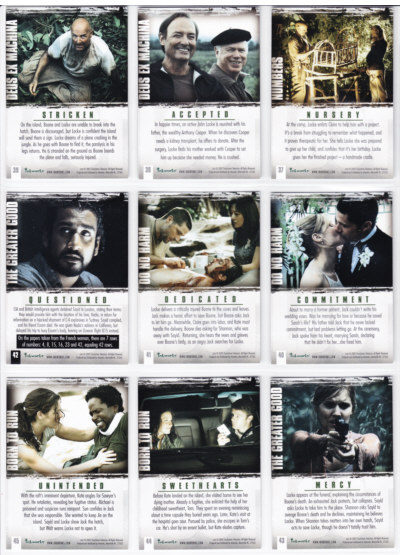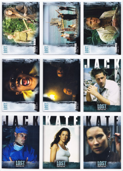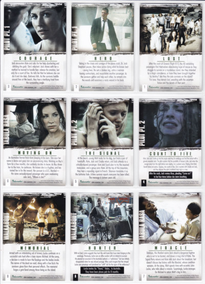 LOST Season One Trading Cards base set issued by Inkworks. This 90-card series gives insights into the characters and backstory, and a recap of the mysteries unfolded in the LOST premiere Season.