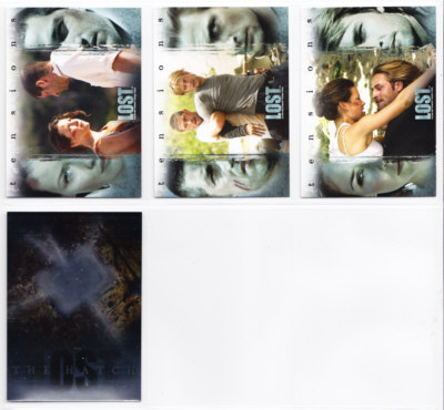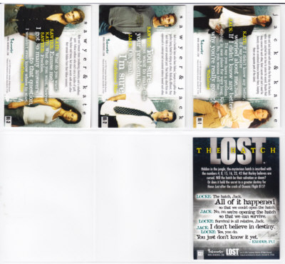 3 different box loader "Tension" cards, one as bonus for a display box. 1 case loader foil card "The Hatch", one as bonus for a shipping case.