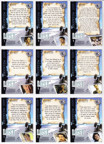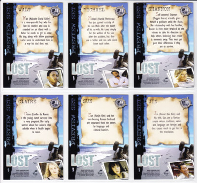 Preview set of 15 LOST premium trading cards issued by Inkworks in 2005 to promote the upcoming LOST Season One Trading Card Collection in November 2005.